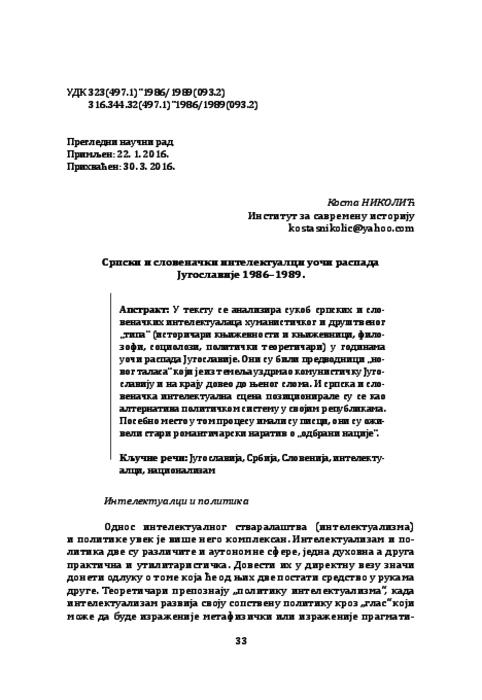 Yugoslavia, Serbia, Slovenia, intellectuals, nationalism