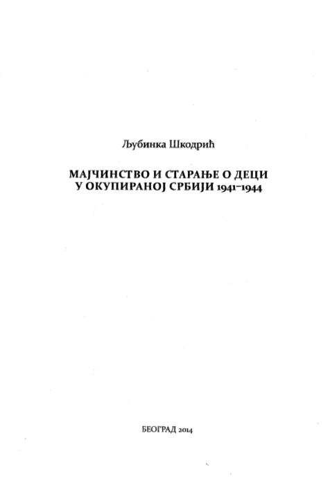 Мајчинство и старање о деци у окупираној Србији 1941-1944