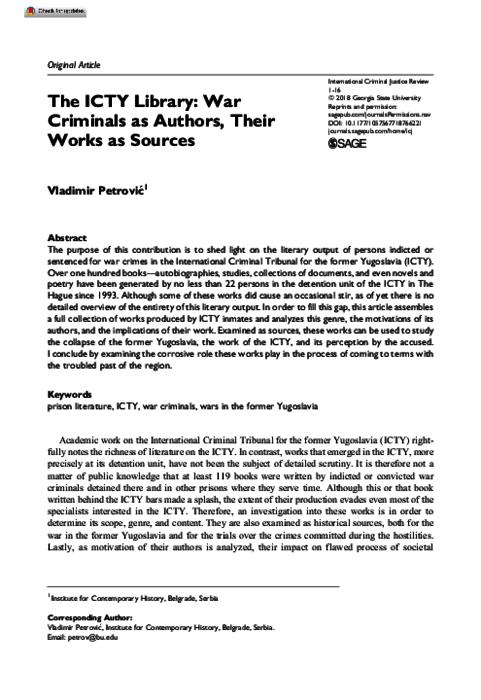 The ICTY Library: War Criminals as Authors, Their Works as Sources
